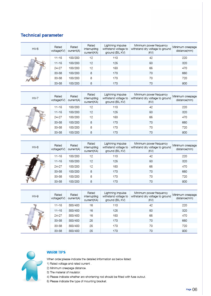 Model: standard cutout, loadbreak cutout, fuse cutout-arrester combinations,disconnect blade cutout
