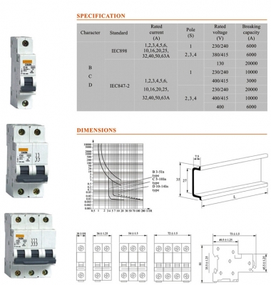 C60N 63A Din Rail mounting circuit breaker mcb Mini Circuit Breakers