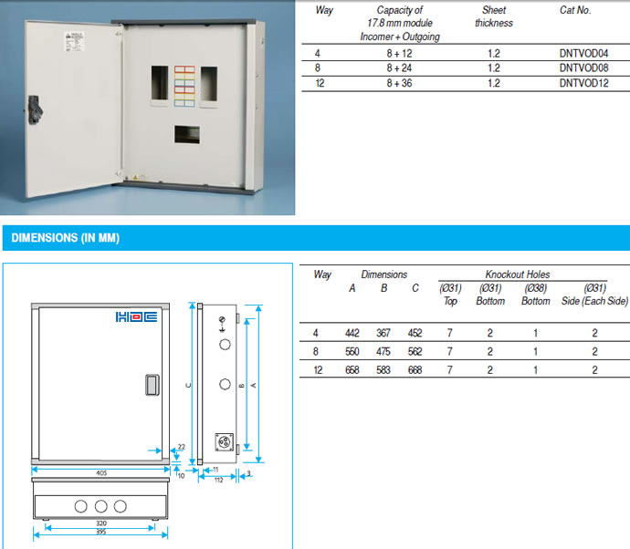 With provision of FP isolator/MCB/RCCD/MCB+RCCB/Isolator+rccb as incoming and SP/DP/TP outgoing