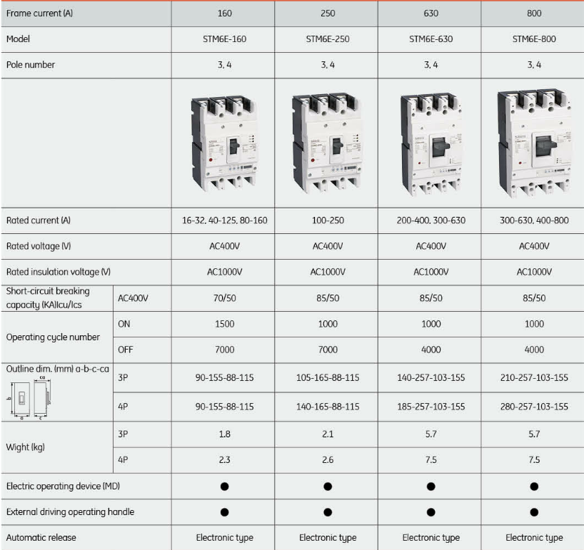 STM6E Series mccb electric Moulded-case of Intelligent Electronic Adiustable Circuit Breaker types