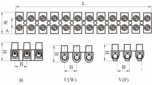 12Ways Terminal blocks U H W Shape 3A-100A Separatable link strip