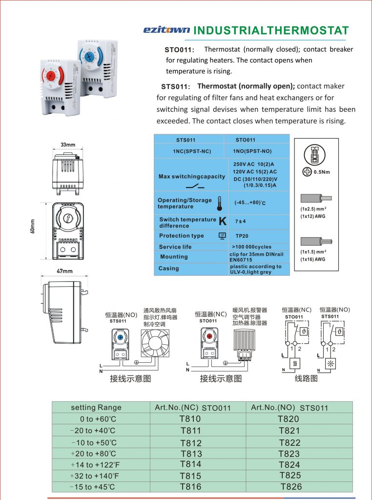 The Industrial thermostat STO 011 is a compact, mechanical thermostat designed for regulating heaters and maintaining minimum temperatures in enclosures. It features a normally closed (NC) contact that opens as the temperature rises, making it ideal for applications where heating is required to prevent temperatures from dropping too low.Thermal Edge+14device.report+14asset.solutionsdirectonline.com+14OEM Automatic