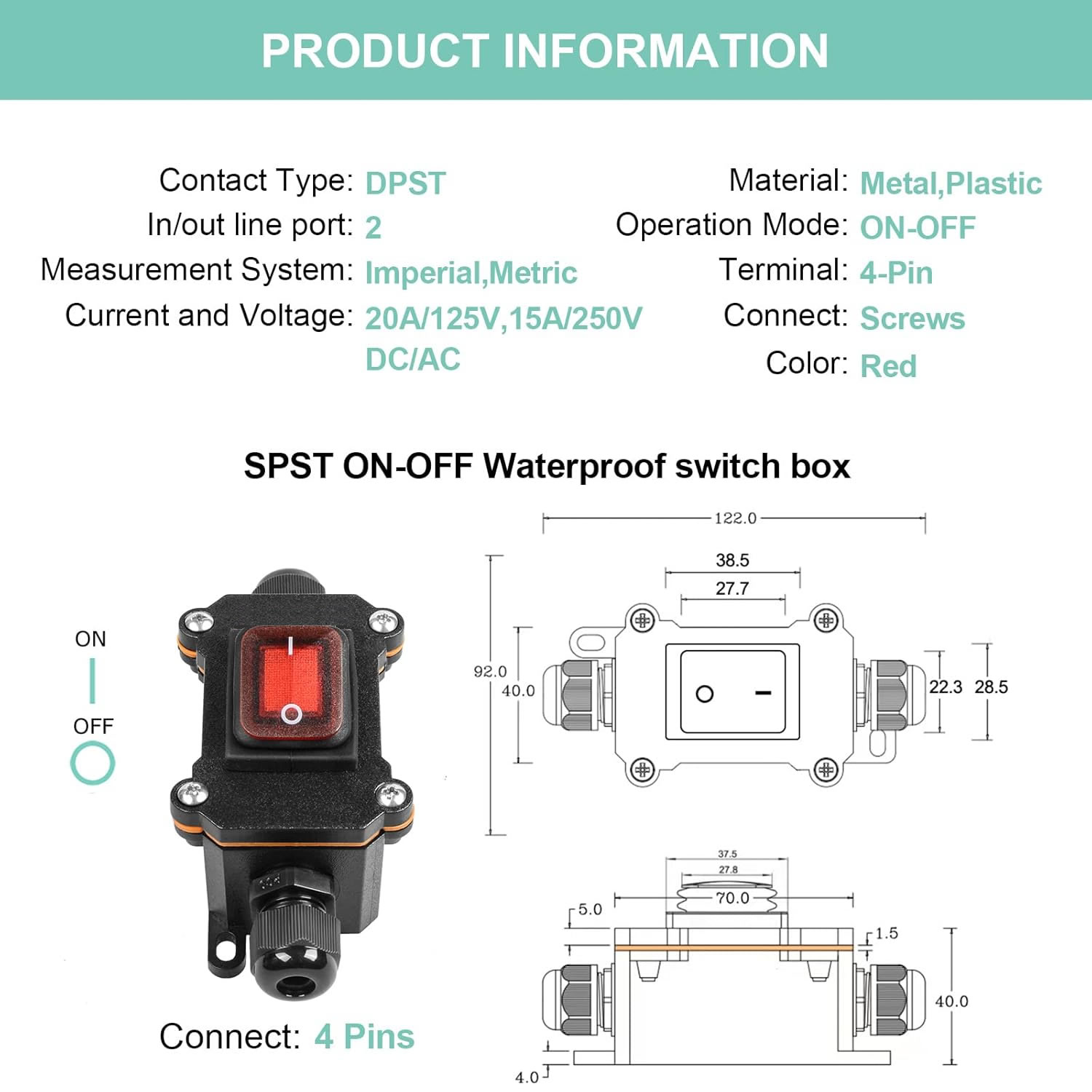 Waterproof box for Switch, good for Aluminium rocker switch